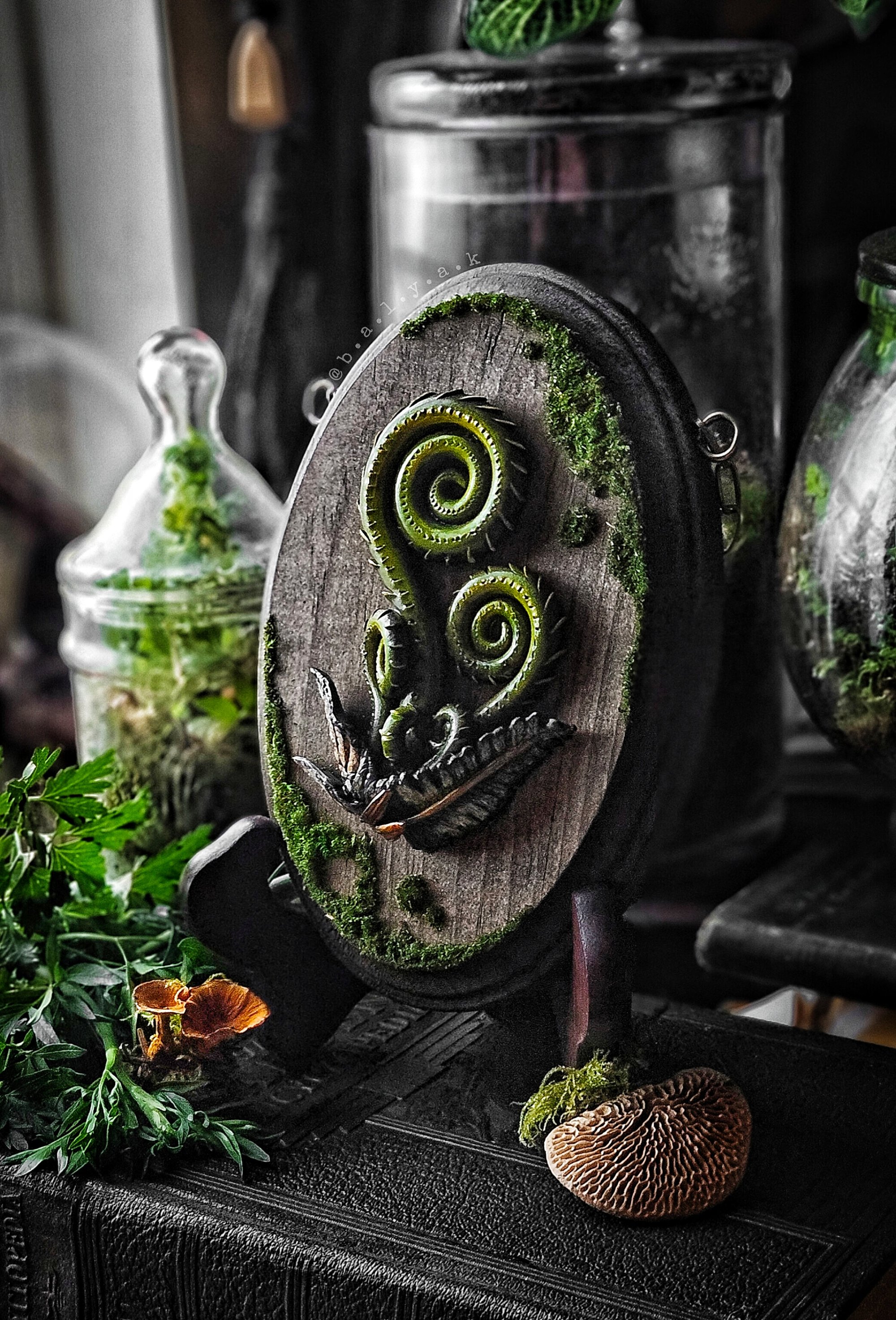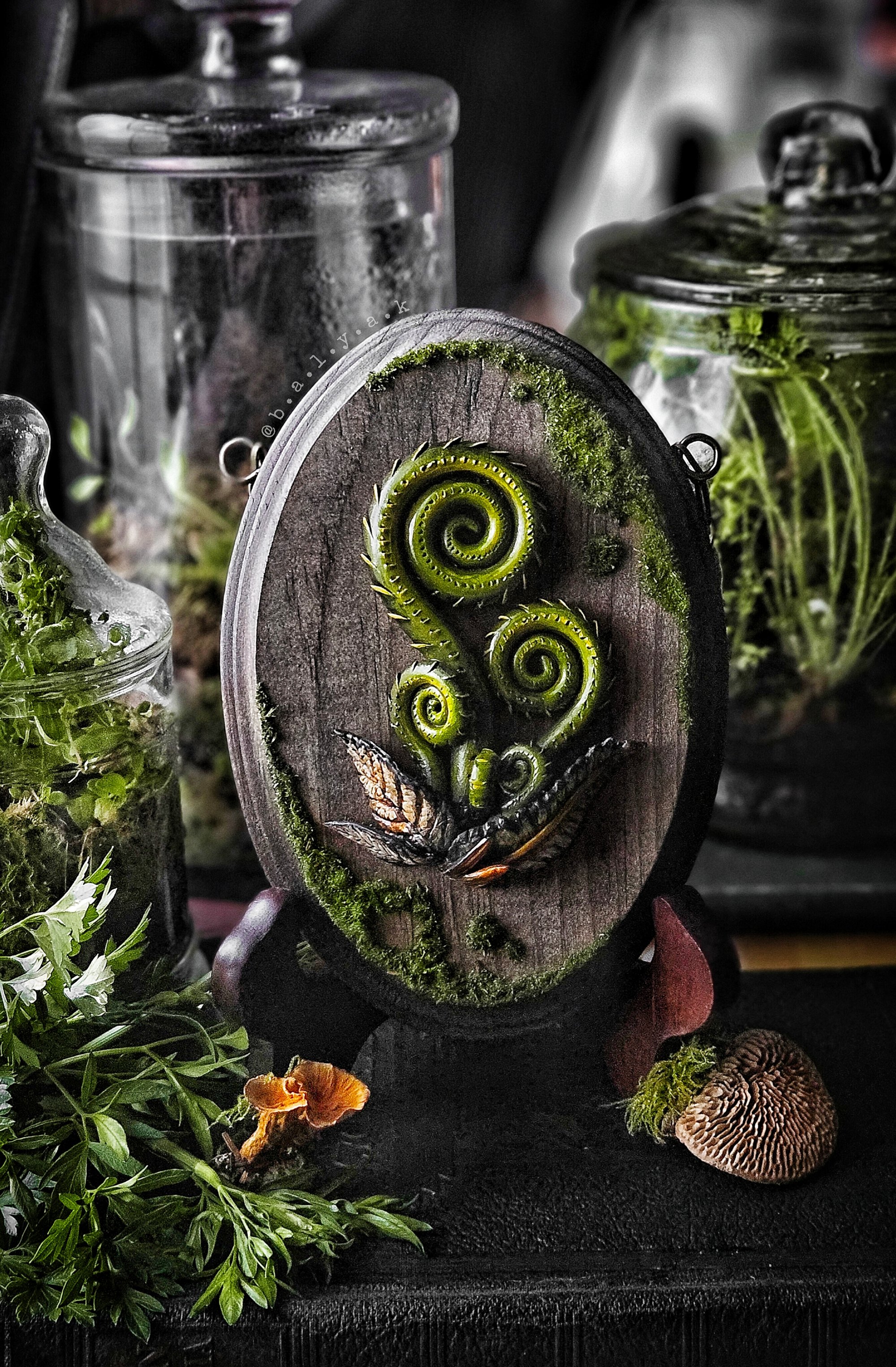 These oddity plaques showcase hand-sculpted and hand-painted natural elements, adding a lovely charm to any mycology and culinary lover's decor. Displaying these elements in such a fun style has been a tradition dating back to the early 19th century and even having their moments since the psychedelic 1970s.